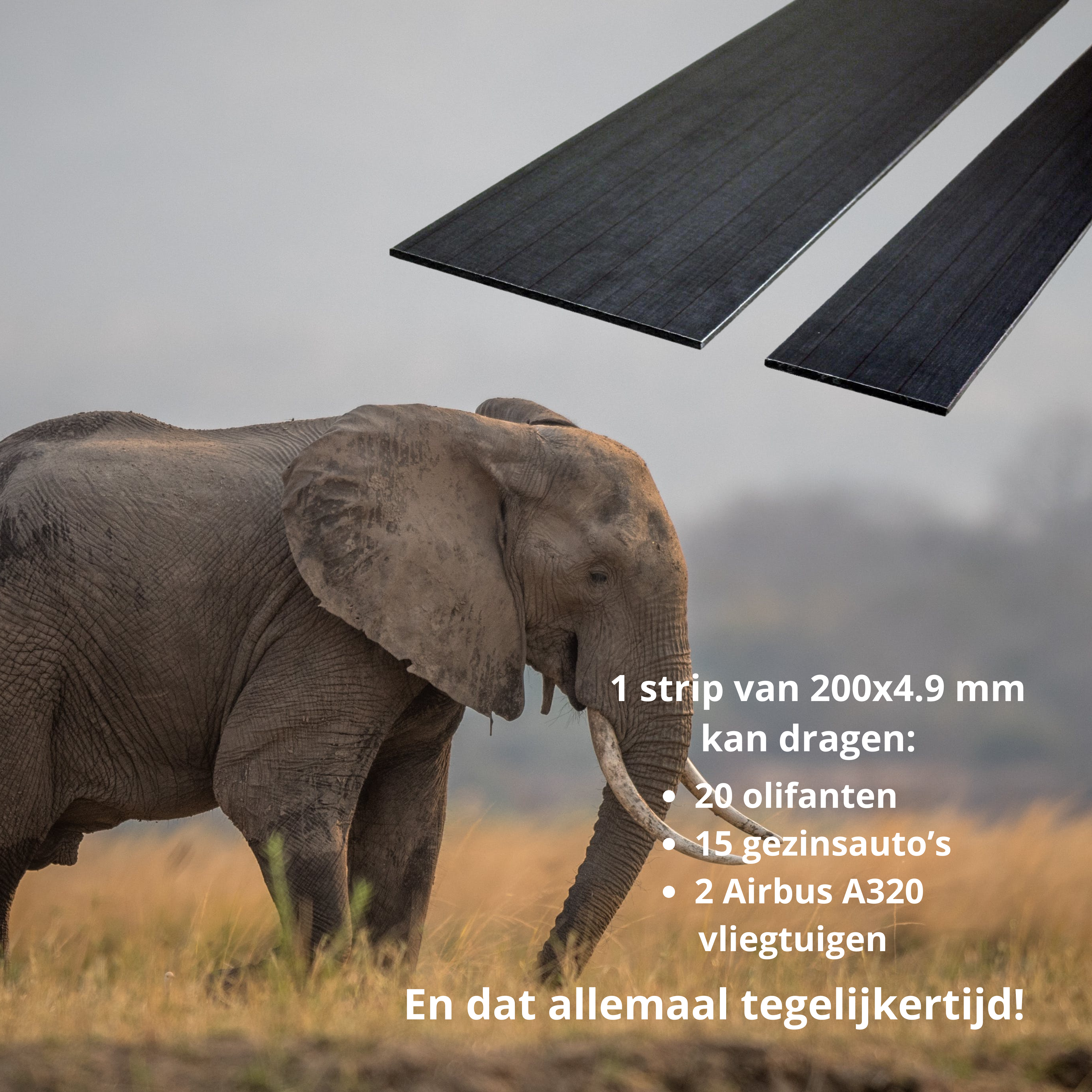Die Streifen können sich beim Anfassen flexibel anfühlen, doch wenn sie einmal montiert wurden, werden sie enorme Belastungen tragen können. Ein Streifen von 200 x 4,9 Millimetern kann 20 Elefanten, 15 Familienautos und 2 Airbus A320 Flugzeuge auf einmal tragen! Für die optimale Verwendung dieses beeindruckenden Materials müssen während der Verarbeitung und Montage die richtigen Vorbereitungen getroffen und richtigen Materialien eingesetzt werden.
